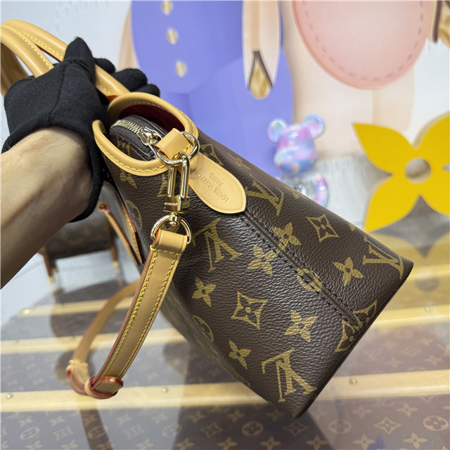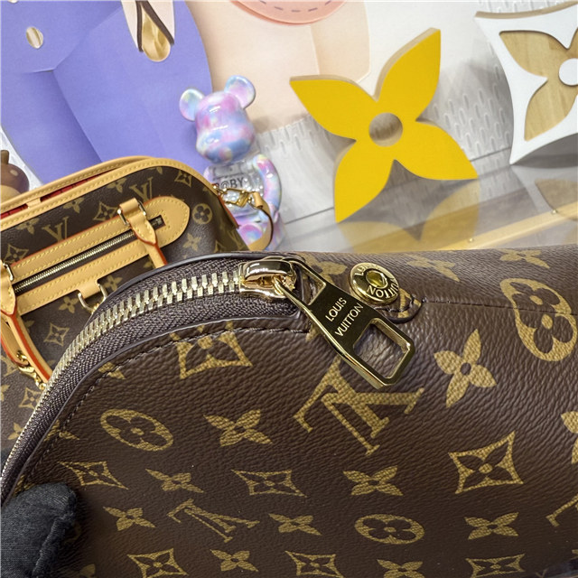 Evoking Parisian chic, this Ever More PM is inspired by the sleek lines of the Alma handbag. Made from signature Monogram canvas, it is accented with a decorative gold-toned chain and cowhide trims, and comes with a removable strap to ensure plenty of carry options. Functional and sophisticated, this tote design also includes a removable Monogram pouch, which can be used as an interior compartment or carried solo.